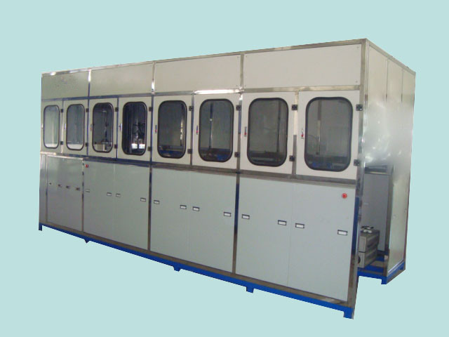 上料→超聲粗洗→超聲精洗→超聲精洗→熱風干燥→下料